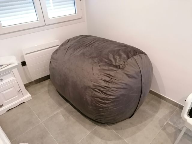 Detalles del productoPuff xxl súper cómodo, es súper cómodo pero no me lo puedo quedar ya que creíamos que era más pequeño y es gigante casi como un sofá, era para el salón pero no nos entra ya que ocupa bastante, ideal para un salón grande, dormitorio o bajo. Ojo no se rebaja ya que es nuevo, lo doy con garantía y factura y es de por vida, no se degorma y no es de bolitas es de copos de espuma con memoria es decir que no se deforma, eso sí traed una furgoneta en un coche no entra, se puede probar.