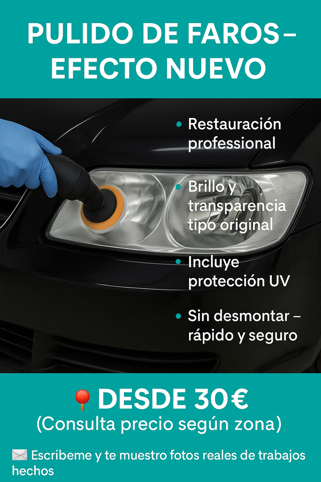 Detalles del producto🔧 Pulido profesional de faros para devolverles brillo y transparencia como el primer día. Mejora la visibilidad, el aspecto del coche y pasa ITV sin problemas.