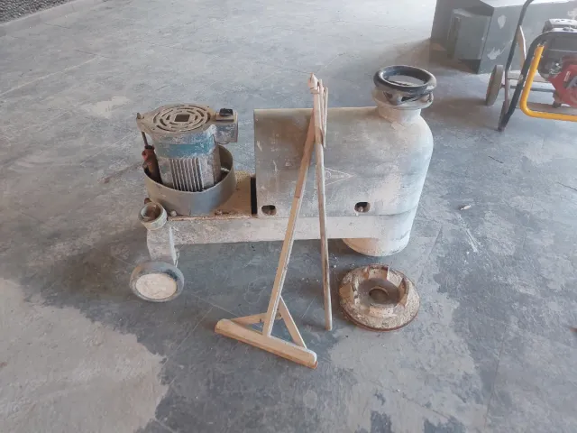 Máquina pulidora industrial con motor. - Estructura metálica. - Ruedas para facilitar el transporte. - Incluye disco de pulido.