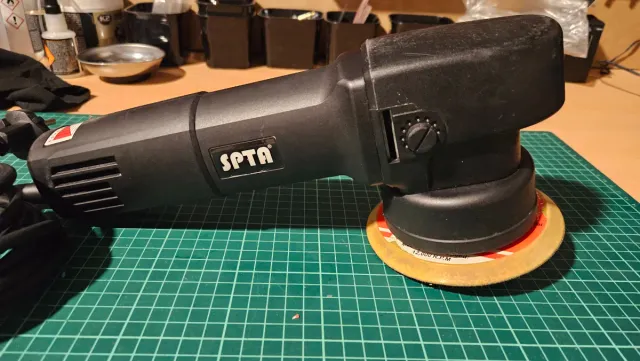 Pulidora SPTA en color negro.con plato de 5 pulgadas y otro de 2 pulgadas,está en buen estado y funciona perfectamente - Diseño ergonómico. - Dial de control de velocidad.