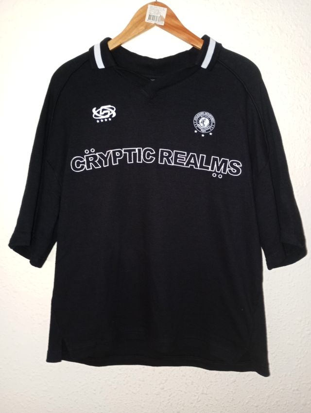 Pull&Bear Camiseta Negra Estilo Fútbol- Talla M