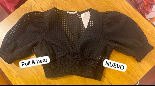 Pull & Bear Top Negro, mangas abullonadas. NUEVO