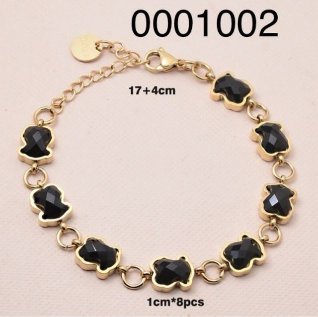 Pulsera Acero Inoxidable Piedras Negras Dorada