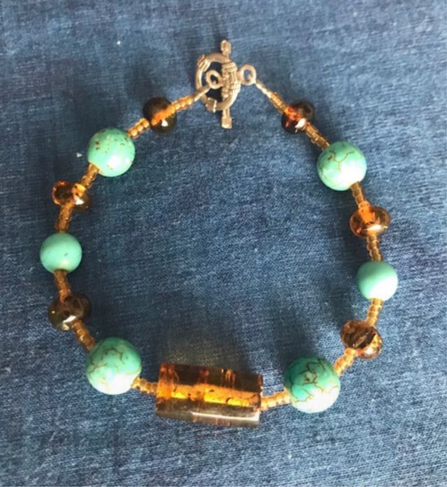 Pulsera Ámbar y Turquesa con Cierre Tortuga