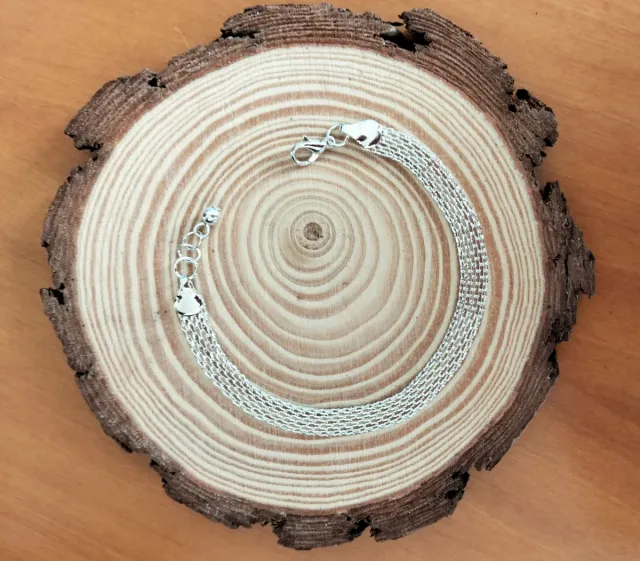 Pulsera cadena de malla plateada.