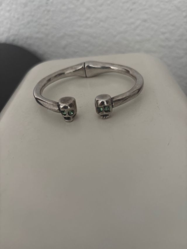 Pulsera Calaveras Plata y cristales Swaroski verde