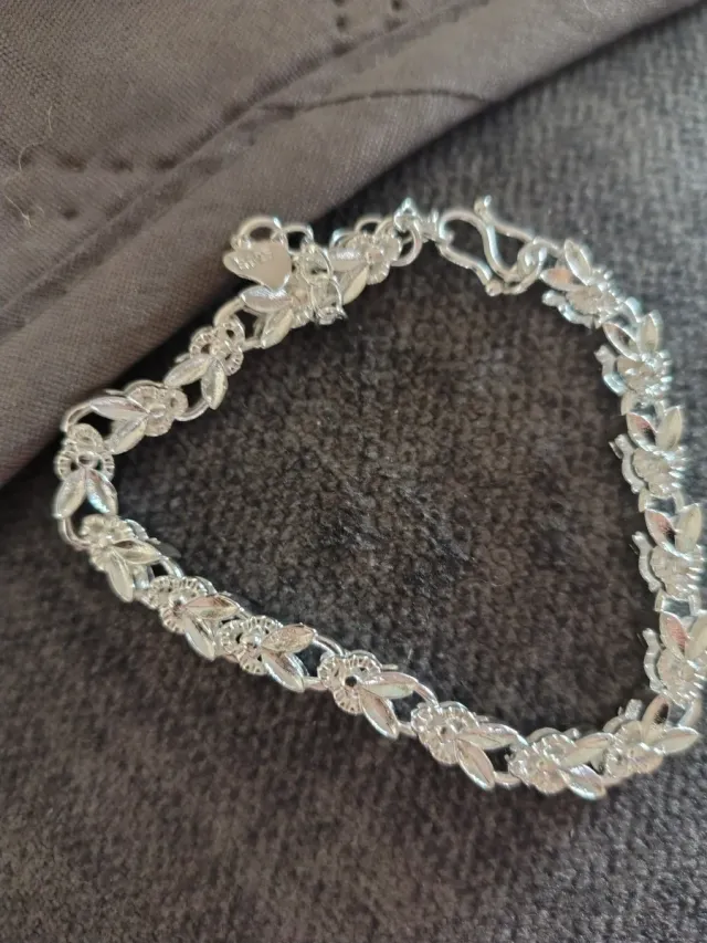Pulsera chapada en plata con diseño floral
