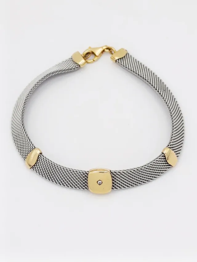 Pulsera con malla de acero y oro 18k.