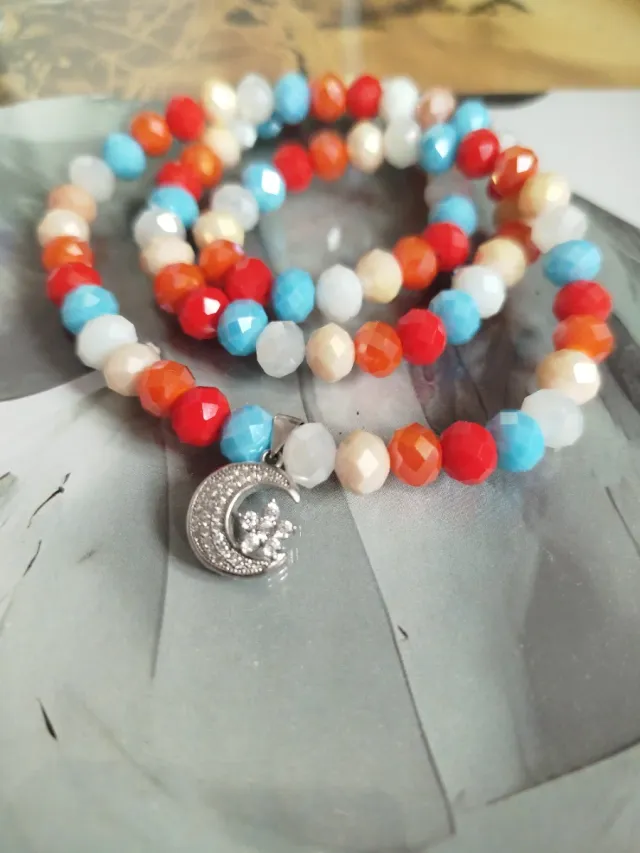 Pulsera Cristal Multicolor Colgante Plata