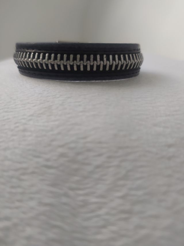 Preciosa pulsera de cuero negro con un cierre de metal elegante. Es una pieza única y llamativa.