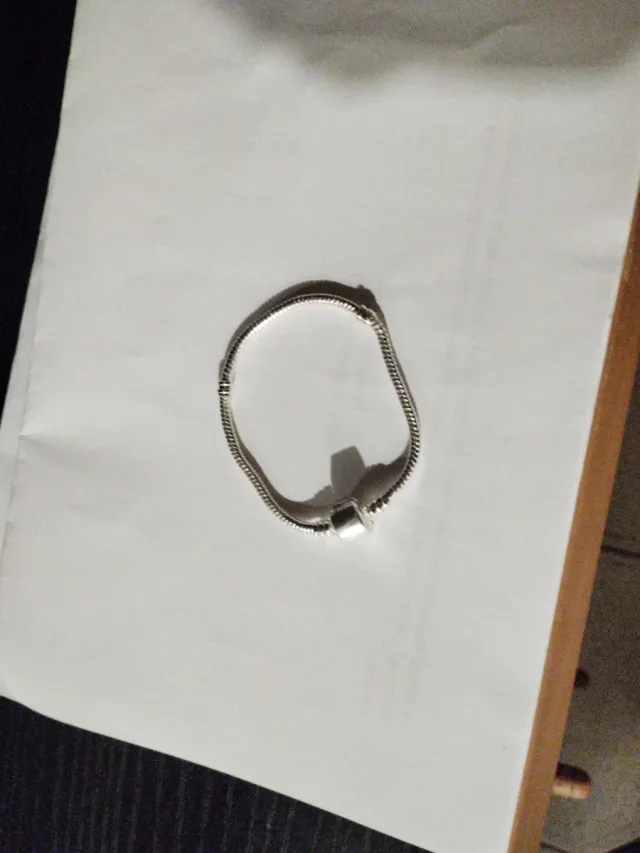 Elegante pulsera de bisutería con un diseño moderno. - Acabado plateado brillante. - Cierre seguro y fácil de usar.