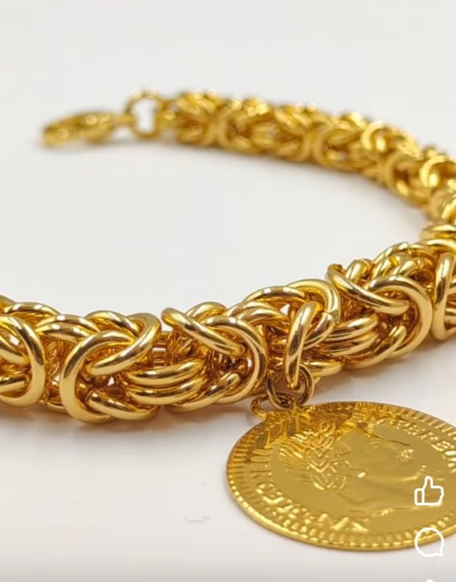 Pulsera de eslabones dorada con moneda