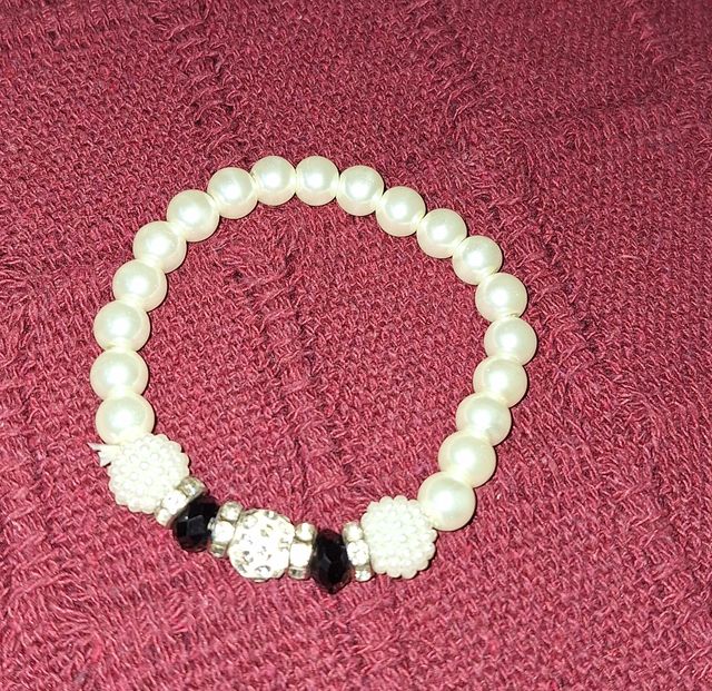 Pulsera de perlas blancas y detalles negros