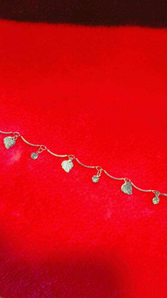Pulsera de pie plateado con hojas y circonitas