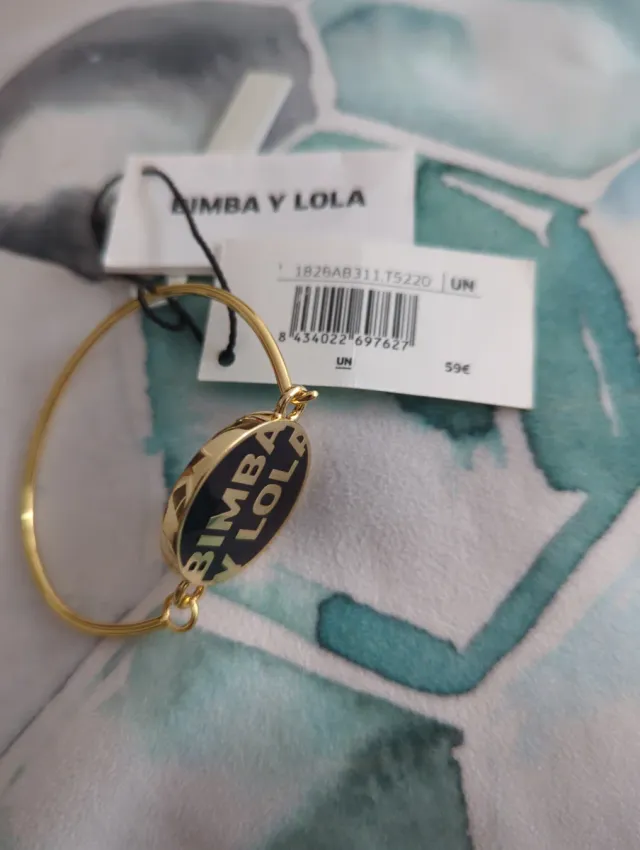 Pulsera dorada Bimba y Lola logo negro. A estrenar