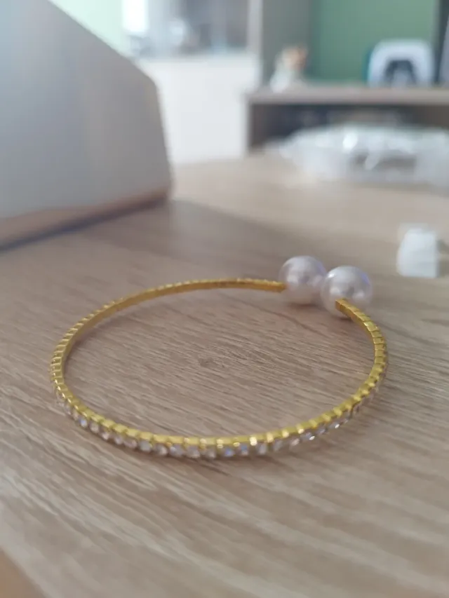 Pulsera dorada con perlas y cristales