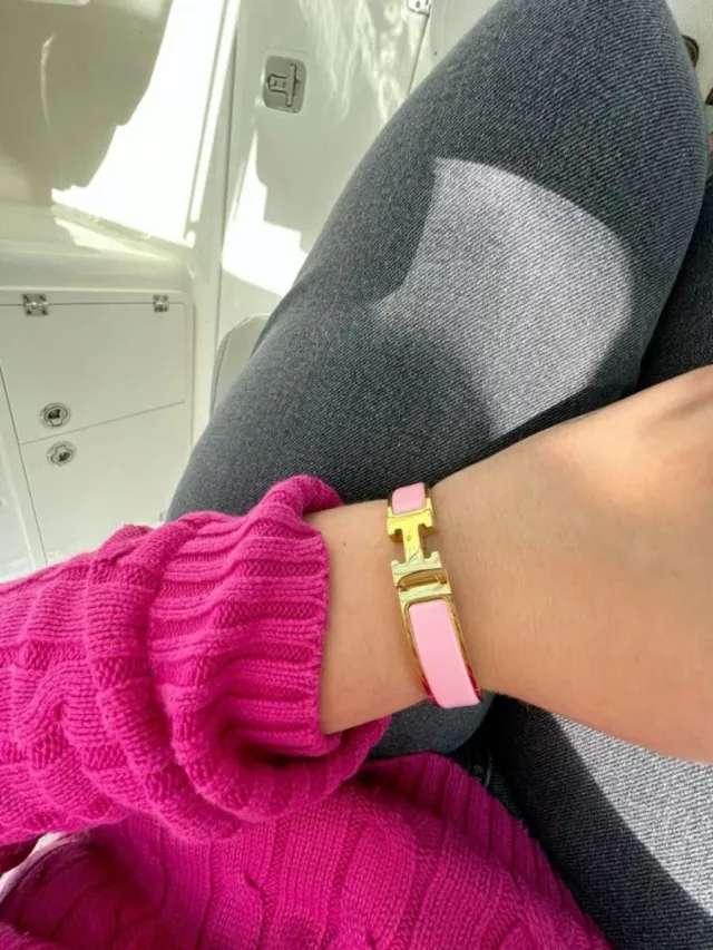 Pulsera H Rosa y Dorada Talla 17 Acero inoxidable