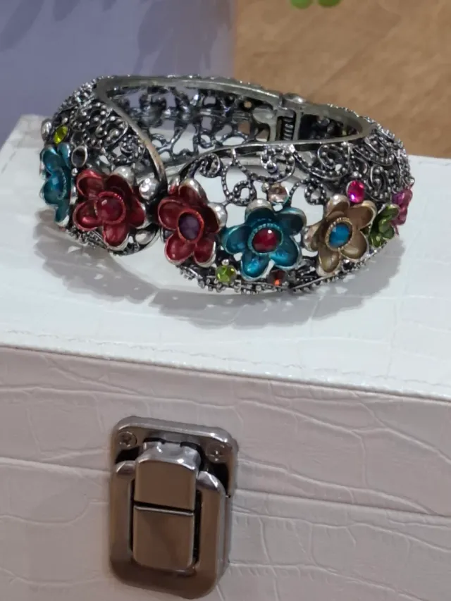 Pulsera metal flores incrustadas