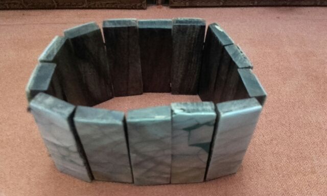 Elegante y moderna pulsera de madera y nácar en tonos tornasolados azules y grises. Nueva a estrenar