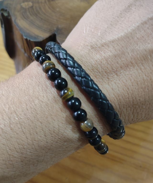Pulsera Ojo Tigre & Ónix - Cuero