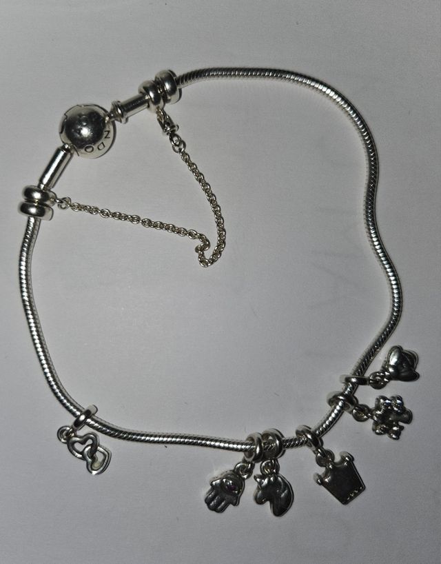 se vende pulsera original pandora con varios charms por falta de uso es grande, preguntar din compromiso