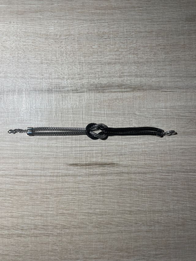 Pulsera Oro Vivo Nudo Negro y Plateado