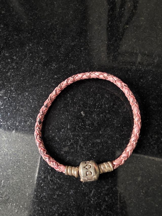 Pulsera Pandora Cuero Rosa Cierre Bola Plata
