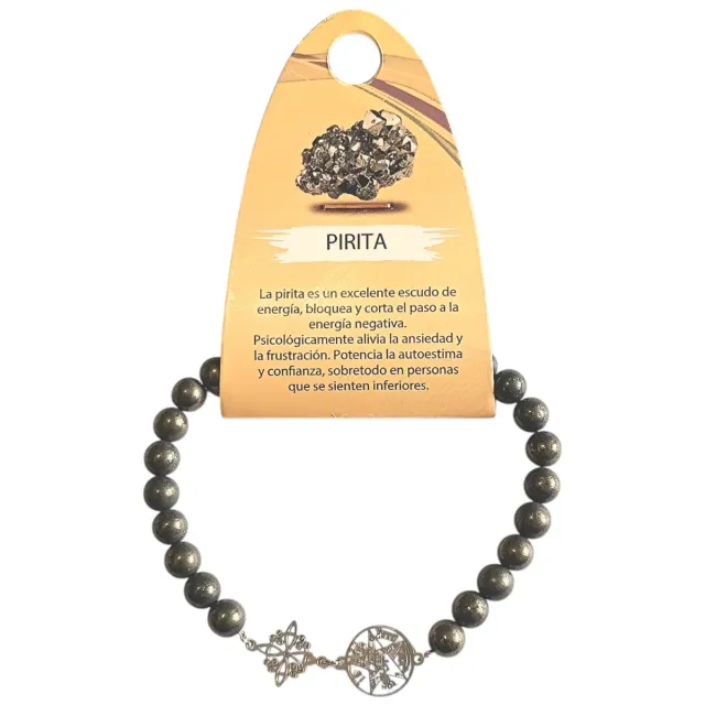 Pulsera de pirita con detalles plateados. La pirita es conocida por ser un mineral de atraer la fortuna .