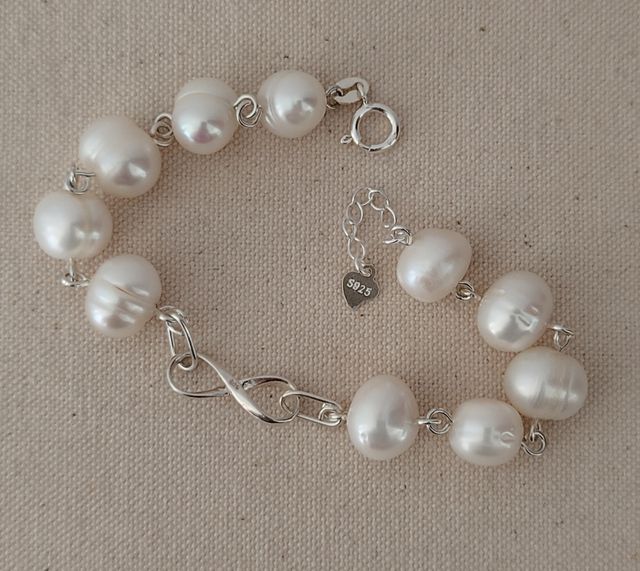 Pulsera, plata ley y perlas
