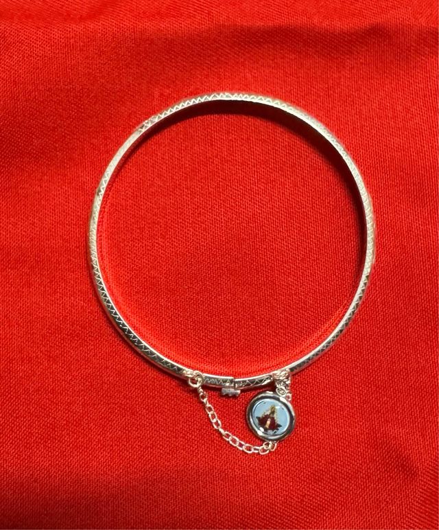 Pulsera plata media caña con charm de 6ctmsx5mm