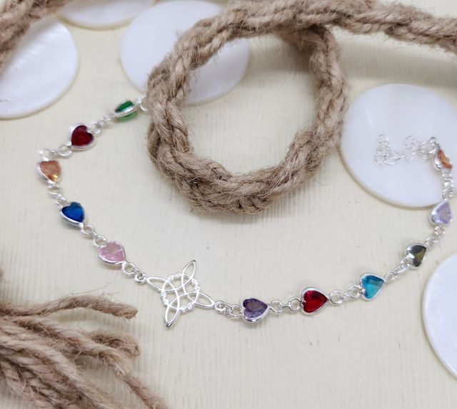 Pulsera Plata S925 Nudo Bruja Cristales Corazón