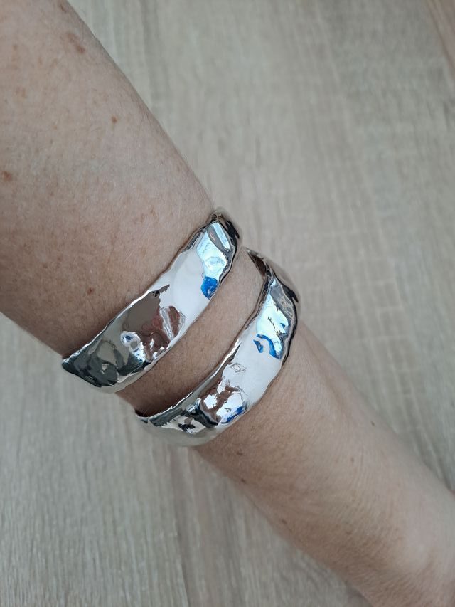 Pulsera plateada ajustable diseño martillado