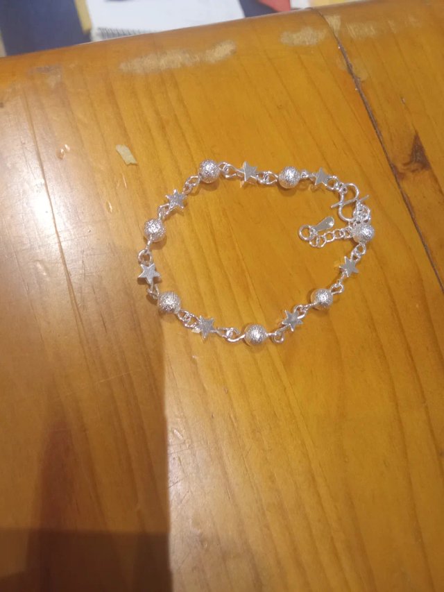 Pulsera plateada con estrellas y bolitas