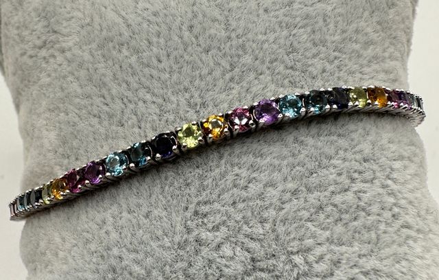 Pulsera riviere de 18 kt con esmeraldas, rubíes