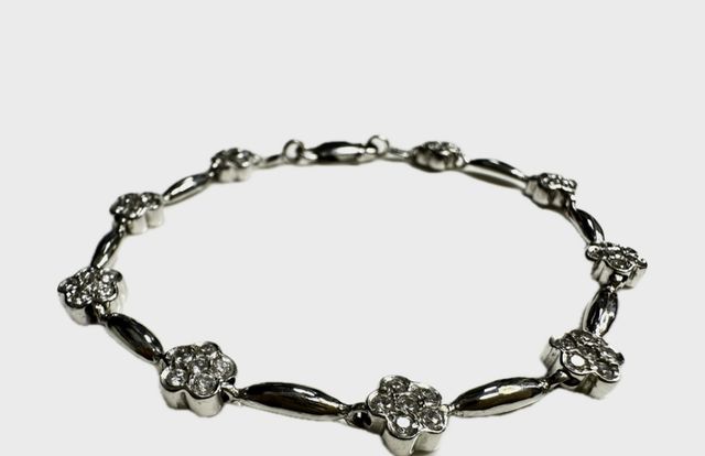 Pulsera semirígida flores circonitas de oro blanco 18K