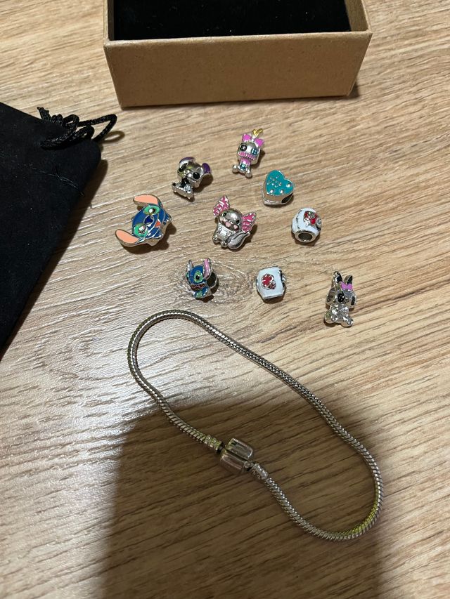Pulsera serpiente plata de ley + 8 charms Lilo