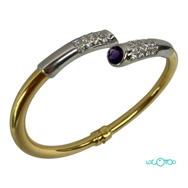 Pulsera Torques Oro 18k Blanco y Amarillo Amatista