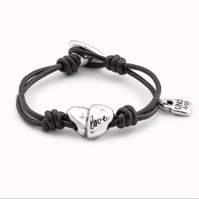 Pulsera UNODE50 cuero negra Plata,nuevo viene caja