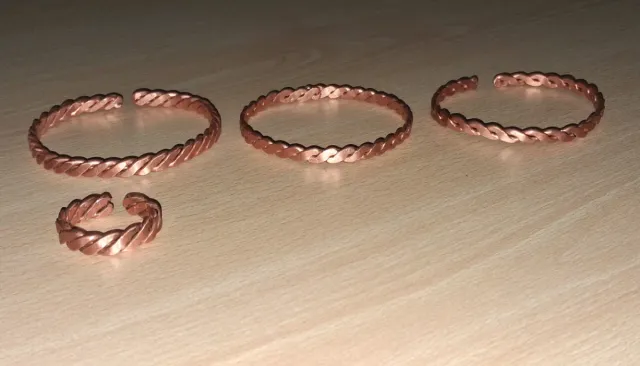 Conjunto de bisutería de cobre con diseño trenzado. - Pulsera abierta. - Anillo abierto. - Diseño de espiral o trenzado.