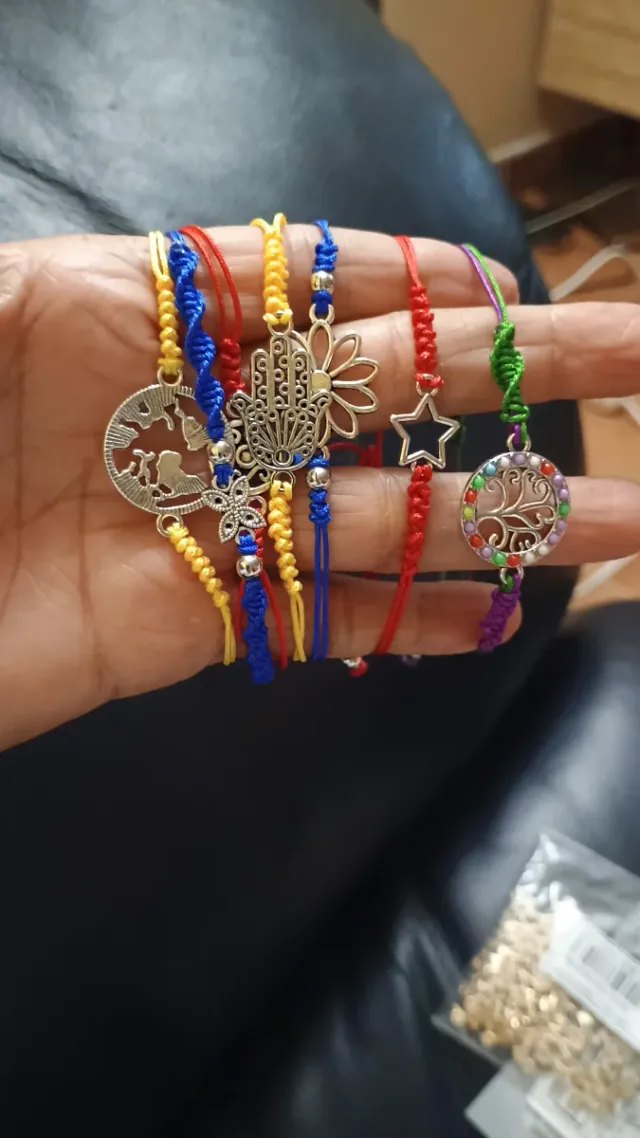 Pulseras con dijes de la suerte y bandera,