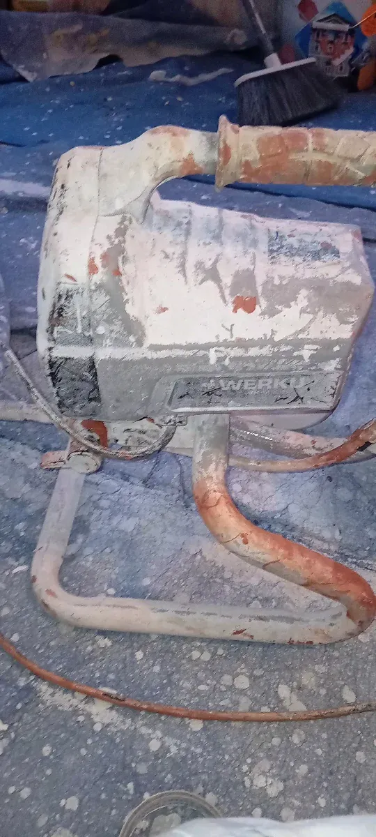 Pulverizador Airless para pintura. Se encuentra en buen estado, con restos de pintura y polvo por el uso. - Incluye manguera. - pistola