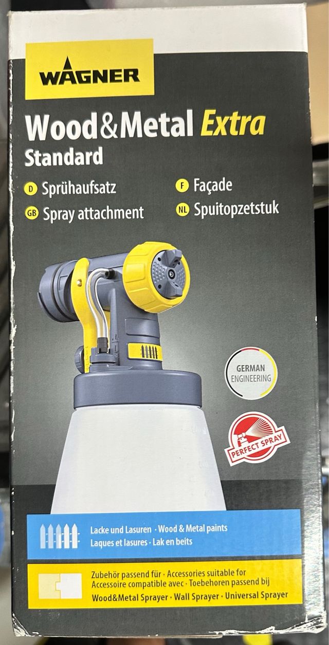 Detalles del productoPulverizador de pintura Wagner Wall Sprayer W450 para pinturas plásticas/látex, barnices y esmaltes para interiores, 15 m²-10 min, depósito 1300 ml, 460 W, manguera 1,8 m