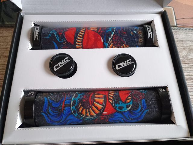 Set de puños para manillar de bicicleta con diseño 3D. - Incluye dos puños. - Tapones de manillar con logo CNC.