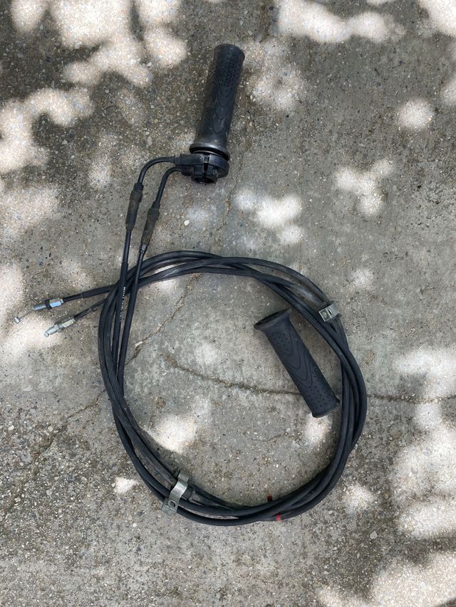 Puños de gas usados para Piaggio Beverly 350. Están en buen estado, aunque muestran señales normales de uso. - Incluye dos puños y cables. - Color negro.