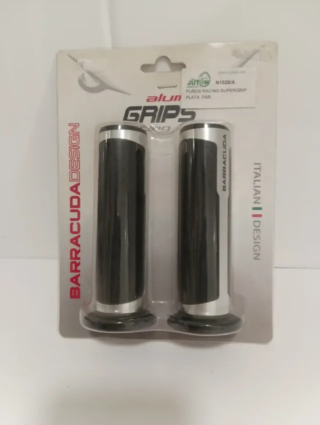 Puños de moto Barracuda Racing Supergrip en color plata. Longitud 120, Diámetro 22. - Diseño italiano. - Modelo N1026/A. - Incluye par de puños.