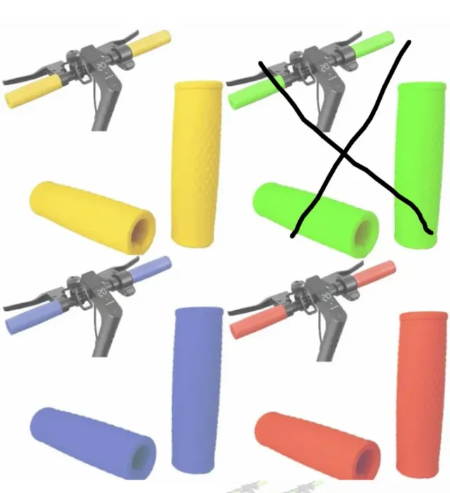 Puños de repuesto para patinete Xiaomi. - Color amarillo, rojo, azul y negro. - Material de silicona. - Textura antideslizante. - Fácil aplicación.