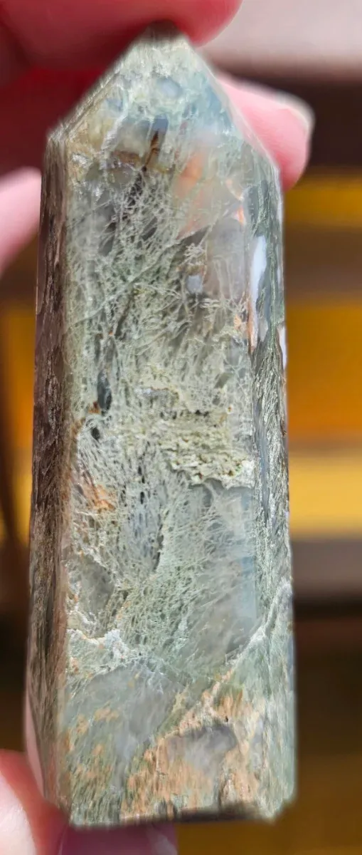 Punta de ágata musho con inclusiones. Medida 7,66 cm