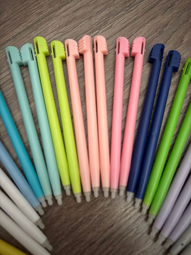 Detalles del productoConjunto de punteros de repuesto para consolas Nintendo DS, 2DS y DSL. Vienen en varios colores pastel y azul marino.