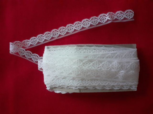 Puntilla blanca bordada. Tiene un peso de 60 gramos.