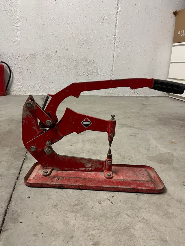 Herramienta de punzonado de la marca Rubi, diseñada para tejas mixtas. Su estructura es de metal rojo. - Fabricada en metal. - Color rojo.